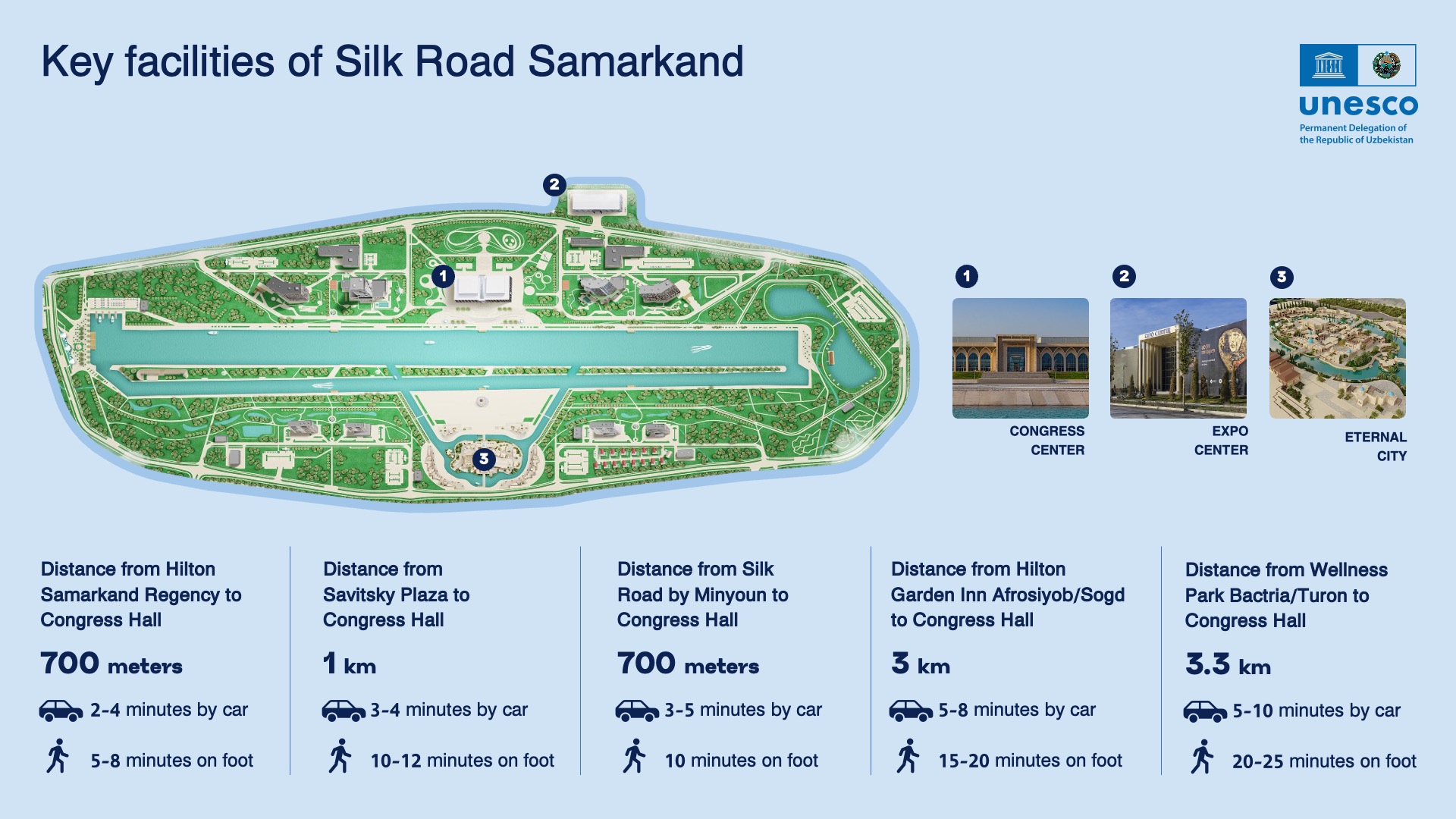 During the 43rd session of the UNESCO General Conference in Samarkand, from October 30 to November 13, 2025, a variety of fully equipped venues will be available for side events, meetings, exhibitions, and receptions.
