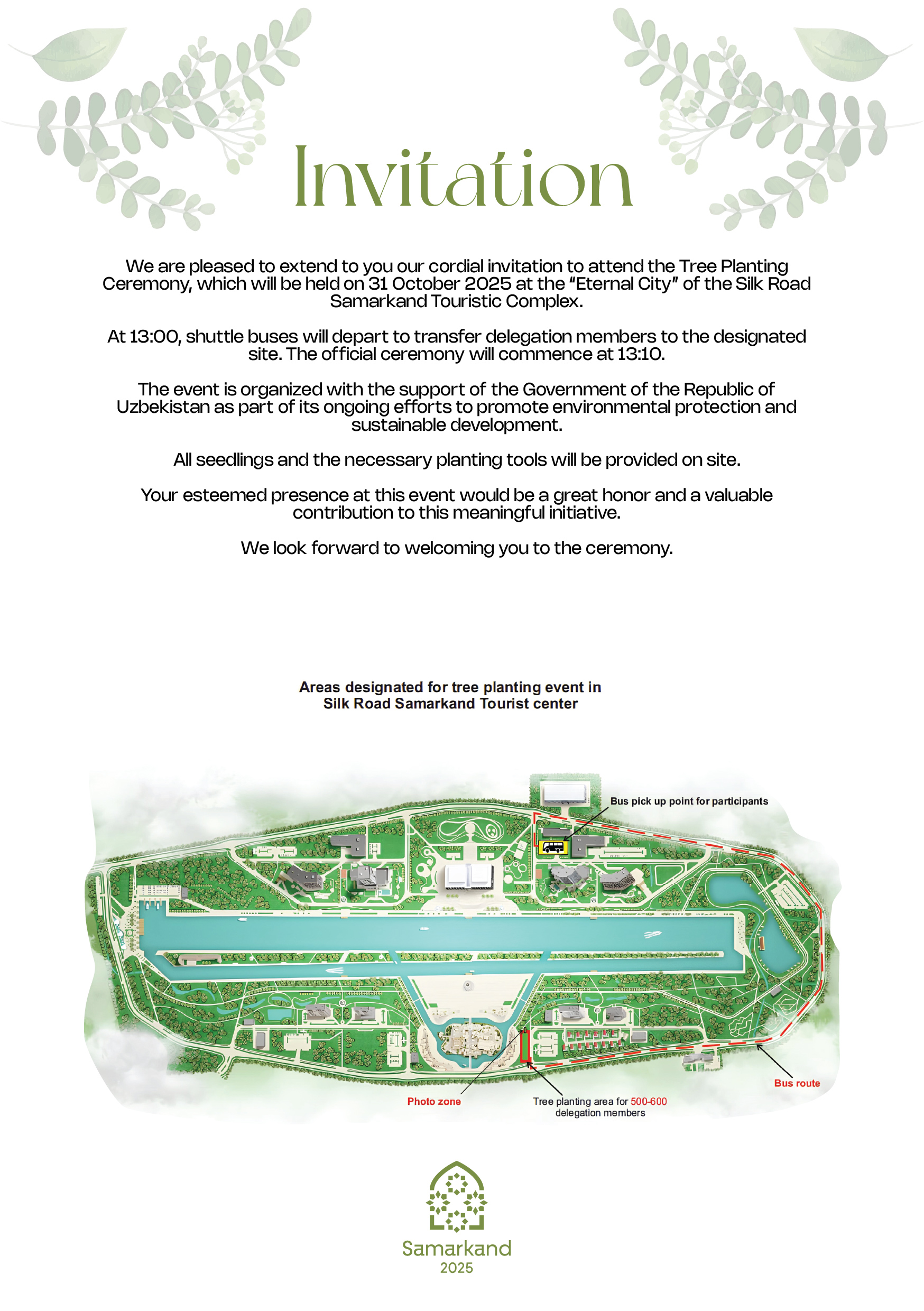 Participants of the event from the USA, France, Germany, Italy, Spain, UK, Latvia, Hungary, Poland, Czech Republic, Israel, China, Thailand, South Korea, Japan, Indonesia, Vietnam, Malaysia, Azerbaijan, Turkiye, Kyrgyzstan, Kazakhstan, Tajikistan, Turkmenistan, Russia, Belarus, Georgia, Egypt, Saudi Arabia, Kuwait, UAE, Qatar, Oman, Iran, Pakistan and India will be able to visit Uzbekistan by direct flights.